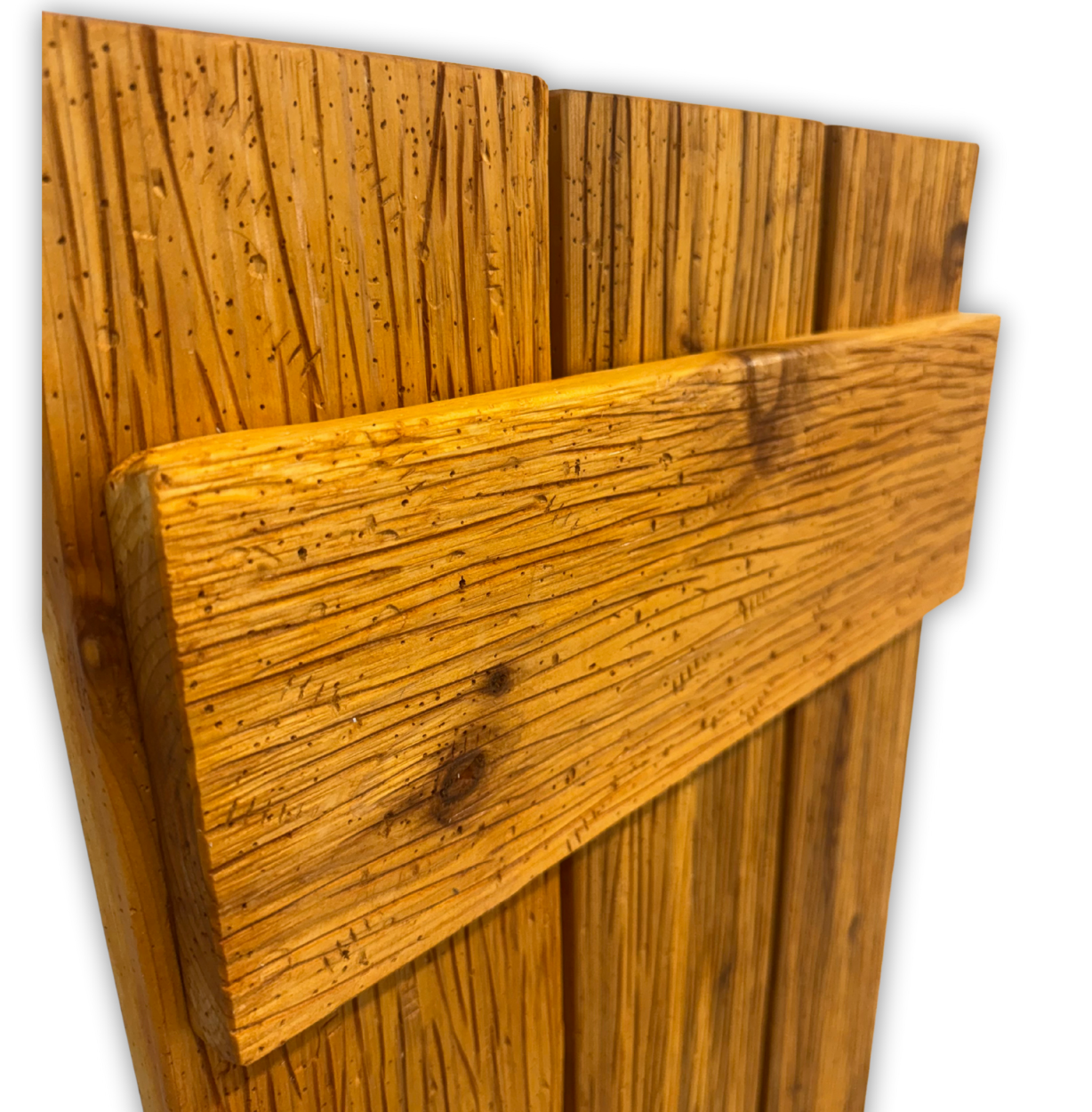 Cedar is naturally resistant to moisture, insects, and decay, making it one of the most dependable materials for exterior shutters. Every set is cut, textured, sanded, reinforced, and stained by hand to ensure long-term durability and structural integrity.