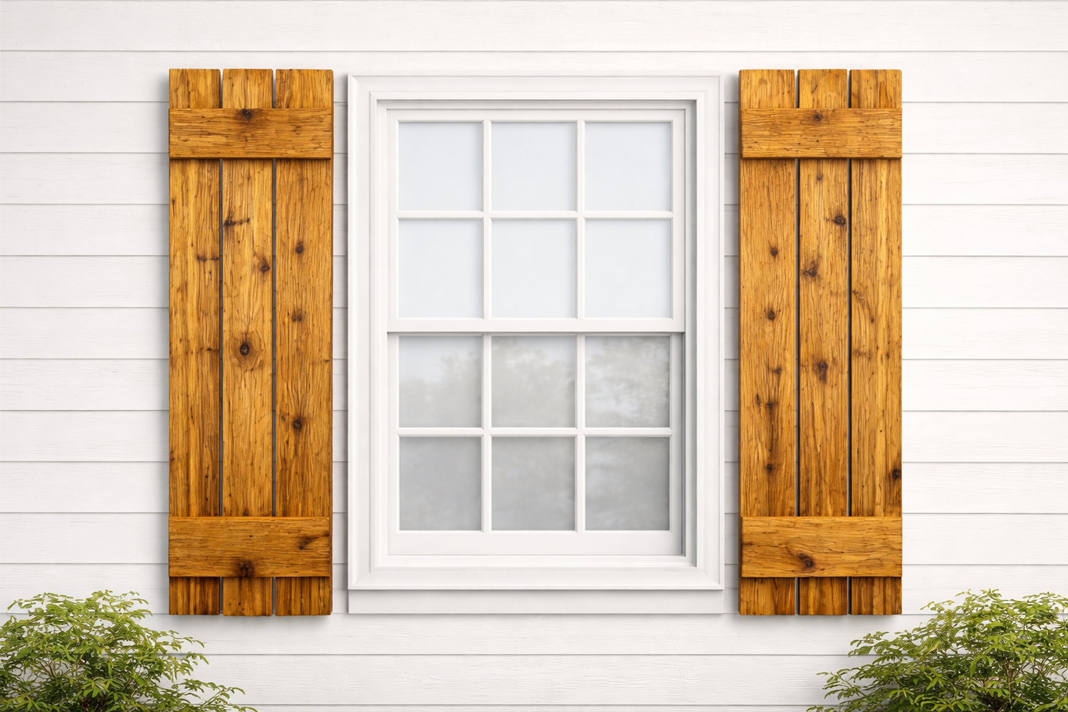 Our handcrafted cedar window shutters are built to order using solid cedar boards designed specifically for exterior use. Each set is custom sized to your window and assembled by hand to create a durable, rustic accent that enhances the character of your home.